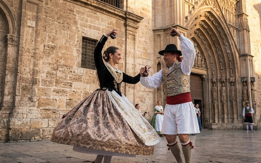 But their presence extends well beyond Andalusia. In Aragon, the dancers of Jaca perform the traditional castanet dance before the shrine of Santa Orosia, dressed in white with sashes and bells, in a tradition documented since 1650. In Valencia, the Danses keep three artisanal models alive (La Font de la Figuera, Xàtiva and Morella), carved from local woods such as apricot root or holm oak heartwood.