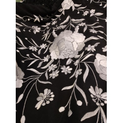 Mantónd de Manila seda natural bordado a mano en seda natural.